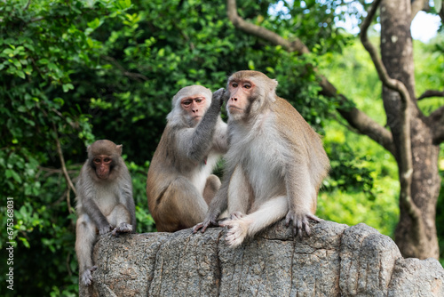 Fototapeta premium Family of three macaque monkeys