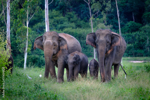 © bnoragitt, Naklejka premium Family of wild Elephants in forest