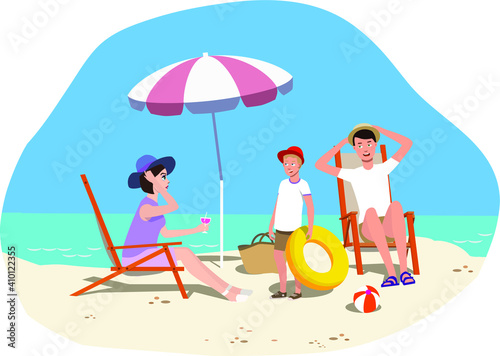 Fototapeta premium Family on vacation, beach, sea, vacation, vector.