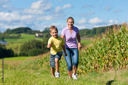 © Kzenon, Obraz premium Family outdoors is running on a meadow