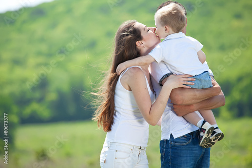 © nuzza11, Fototapeta premium Family playing with son in the flowers field