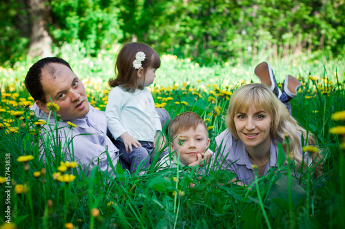 © ferkhova, Fototapeta premium Family portrait in a spring park.