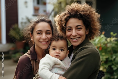 © Vorda Berge, Obraz premium Family portrait of two mothers and their baby at home