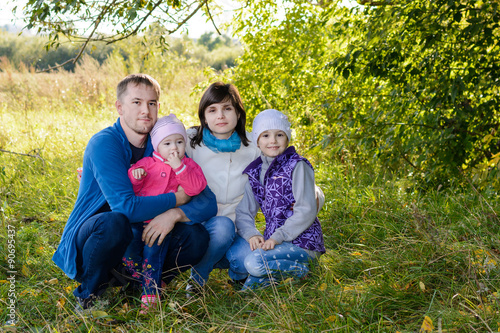 © Ramil Gibadullin, Obraz premium Family resting the meadow in autumn