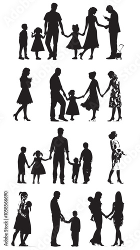 Fototapeta premium Family silhouettes, Happy family silhouette set