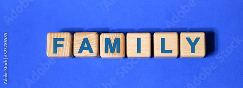 © Aksana Kavaleuskaya, Fototapeta premium FAMILY text on wooden cubes. Family concept