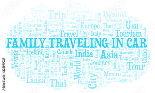 Obraz premium Family Traveling In Car word cloud.