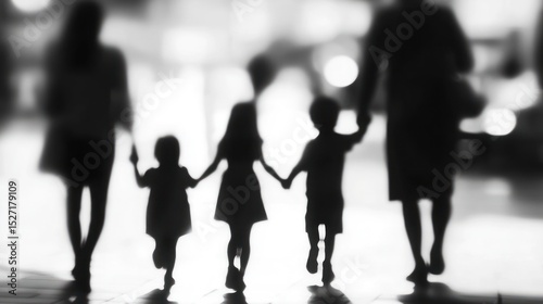 © Lesuna, Fototapeta premium Family walking city street silhouette