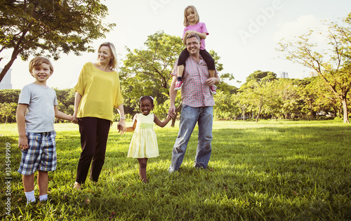 Fototapeta premium Family Walking Field Nature Togetherness Concept