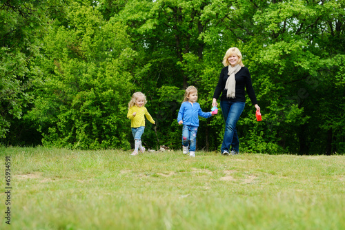 © Elena Stepanova, Fototapeta premium family walking in forest