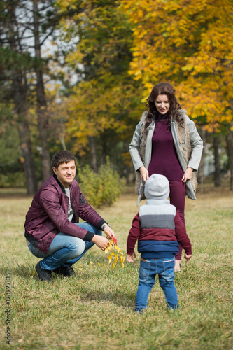 © Evgenia Tiplyashina, Fototapeta premium family walks in the autumn park