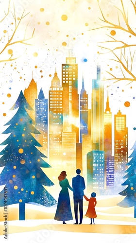 Obraz premium Family Winter Cityscape Watercolor