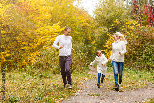 © Angelov, Fototapeta premium Family with child go in autumn park