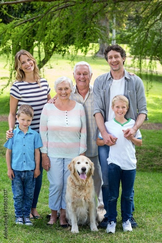 Obraz premium Family with dog in the park