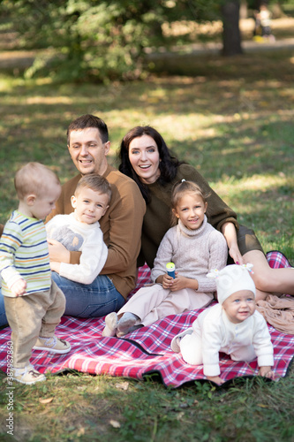 © Evgenia Tiplyashina, Fototapeta premium Family with four children