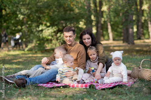 © Evgenia Tiplyashina, Fototapeta premium Family with four children