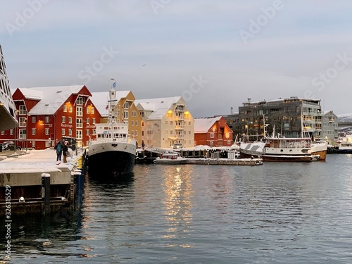 © Marc, Fototapeta premium Famosa vista del puerto artico de Tromso en Noruega