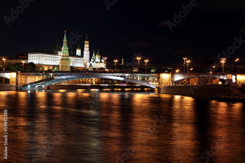 © konstantant, Fototapeta premium Famous and Beautiful Night View of Moskva river, Big Stone Bridg