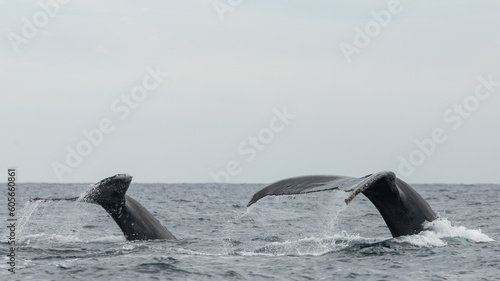 Fototapeta premium Famous and happy whales in a whale watching touristic tour