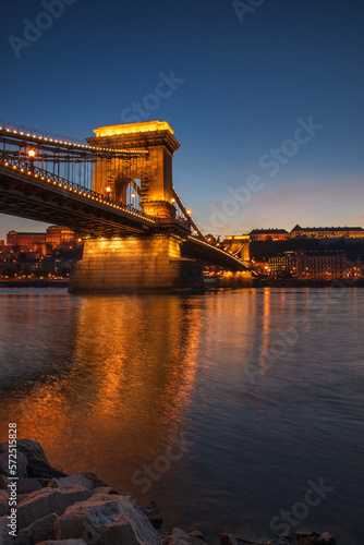 Fototapeta premium Famous Chain bridge over Danune river view at sunset