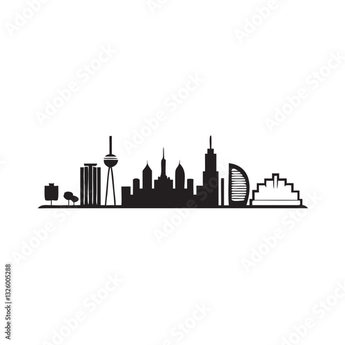 © VektorDesign, Fototapeta premium Famous city skyline with iconic buildings