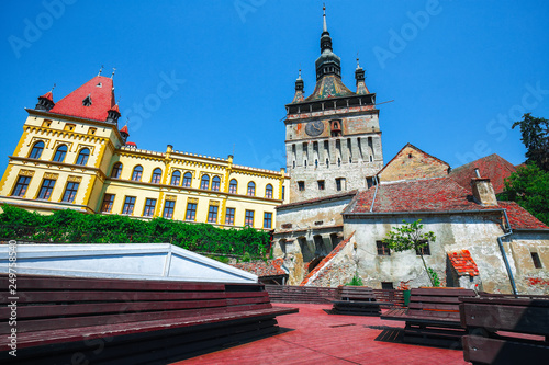 Fototapeta premium Famous clock tower build by Saxons in the nice touristic city Sighisoara.