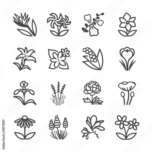 © antto, Naklejka premium Famous Flower line icons Set 2