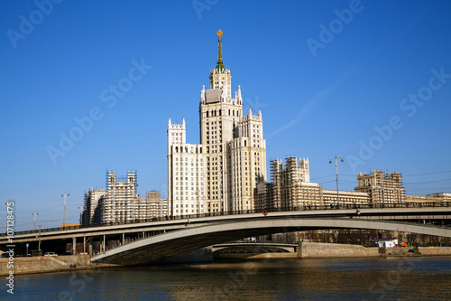 © manyasha, Fototapeta premium famous high-rise building on the Moscow river.