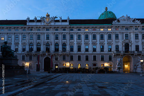 © frimufilms, Fototapeta premium Famous hofburg palace in vienna in the evening, spanish riding school, austria