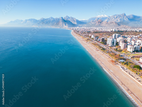 © lotusstock, Naklejka premium Famous Konyaalti Antalya Beach aerial view
