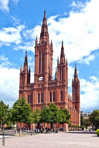 © travelview, Fototapeta premium famous Markt Kirche in Wiesbaden, a brick building in neo-Gothic