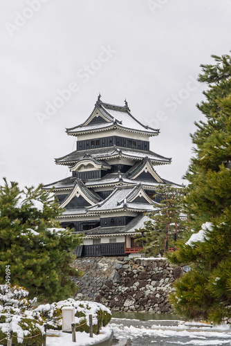 © Hilda Weges, Fototapeta premium Famous Matsumoto castle originally known as Fukashi Castle National treasure of Japan during wintertime in Matsumoto, prefecture Nagano in Japan