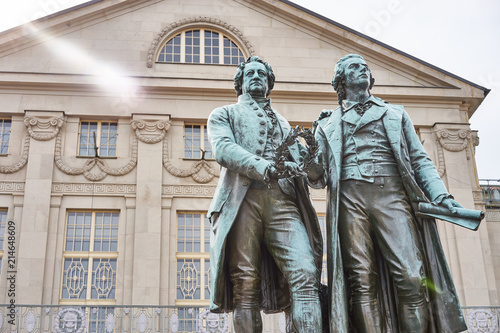 Fototapeta premium Famous sculpture of Goethe and Schiller in the city of Weimar in Germany /...