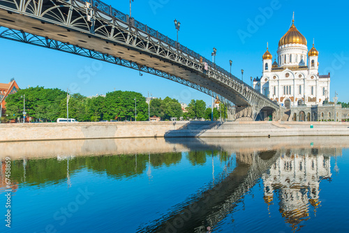 Naklejka premium famous temple of Christ the Savior and the bridge