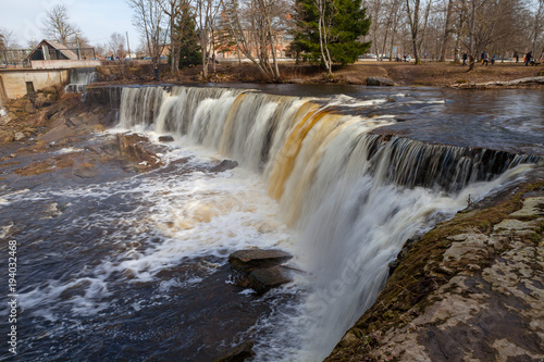 © Mykola Iegorov, Fototapeta premium Famous waterfall in Estonia. Keila-Joa Schloss Fall. Early spring state.