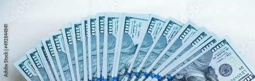 © boryanam, Fototapeta premium Fan of hundred dollars banknotes