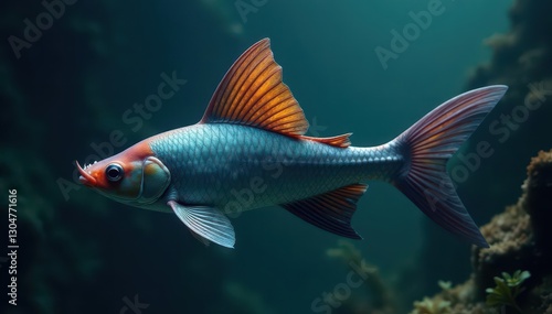 Fototapeta premium Fan-shaped caudal fin, intricate texture, swordtail, underwater, scales
