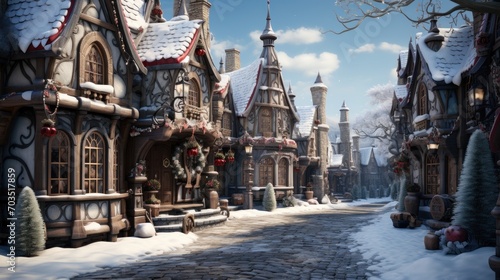 Fototapeta premium Fanciful fantasy Christmas village scene