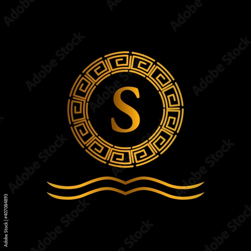 Naklejka premium Fancy logo design template, simple S initials on black background, suitable for restaurants, hotels, cafes, shops, fashion, beauty salons, etc. vector design