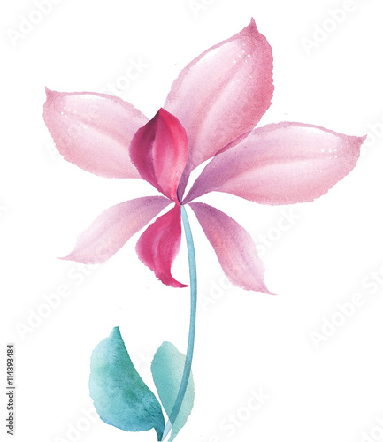 © galyna_p, Naklejka premium fancy orchid flower design element. hand drawn illustration. wat