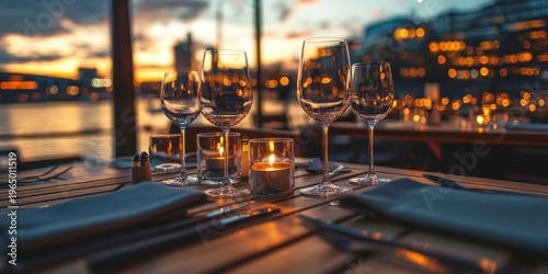 © Rawpixel.com, Fototapeta premium Fancy restaurant table outdoors romantic glasses.