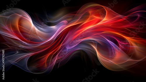 © RPL-Studio, Naklejka premium fantastic abstract flow, smoke, wave, fluid flow background, rainbow colors on dark background