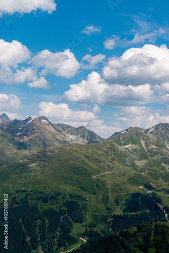 © Robert, Fototapeta premium Fantastic alpine scenery at the Arlberg pass in Austria seen from a small plane