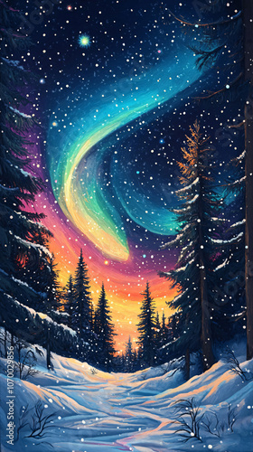 © fadi, Fototapeta premium Fantastic Aurora borealis or northern lights with starry glowing in the night sky on Arctic circle