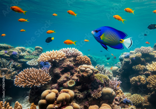Fototapeta premium Fantastic beautiful underwater world with corals and tropical fish.