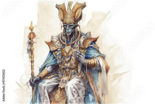 © Evdoha, Obraz premium fantastic character reminiscent of an ancient Egyptian pharaoh sitting on a throne