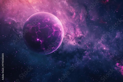 © nsit0108, Obraz premium Fantastic colorful nebula with alien planet rotating in outer space