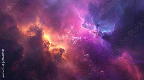 Fototapeta premium Fantastic fractal cloudscape with glowing nebula and bright stars.