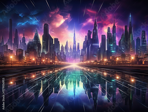 Obraz premium Fantastic Futuristic skyline glows in Dubai dark night