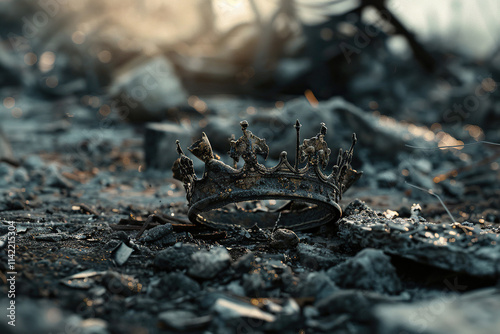 © Kateryna, Fototapeta premium Fantastic king or queen crown from vivid gold material for coronation